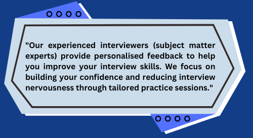 Submit your CV and the job description to schedule a mock interview session. With our Mock Interview and Guidance Service, you’ll enhance your interview skills, build confidence and be ready to secure your dream job.